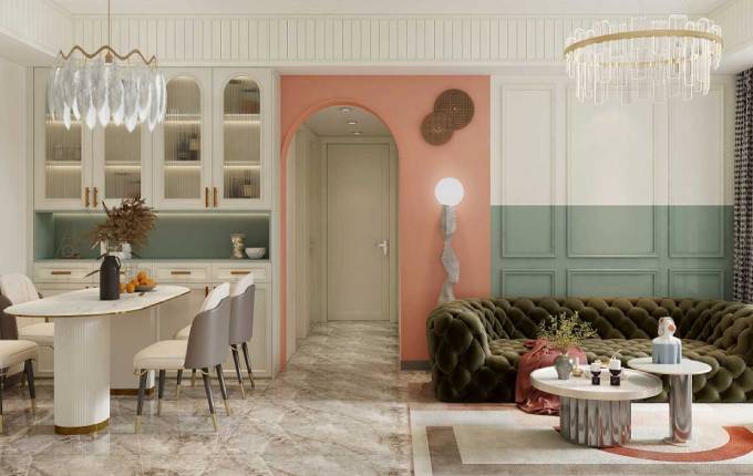 欧式风是回家就能卸下紧绷感的温柔。雕花线条要柔,罗马柱不必太粗,奶白、浅灰打底,配一盏水晶吊灯就够了。餐边柜做旧木纹,藏着茶具和故事;卧室衣柜门带点弧线,摸上去滑溜溜的。不整那些浮夸的,舒服、耐看、随手一拍都高级。家就该这样浪漫又自在。